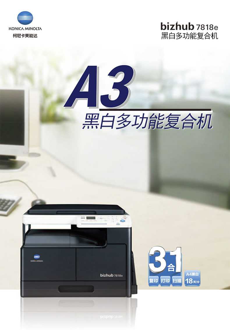 • 產(chǎn)品品牌:柯美7818e/185e/6180e復印機柯尼卡美能達多功能數(shù)碼黑白復合機